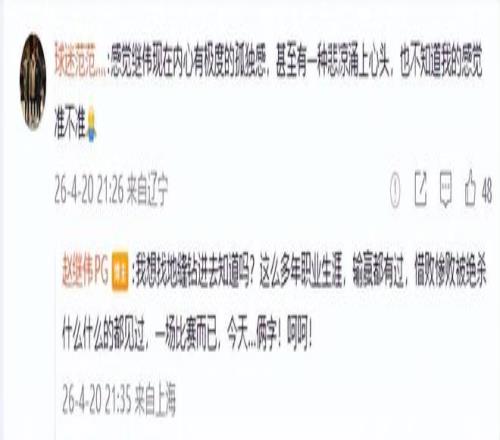 賽后趙繼偉發(fā)文“呵呵”讓大家有些誤會(huì),之后趙繼偉解釋表示:我想找地縫鉆進(jìn)去知道嗎?這么多年職業(yè)生涯,輸贏都有過(guò),惜敗慘敗被絕殺什么什么的都見(jiàn)過(guò),一場(chǎng)比賽而已,今天…倆字!呵呵!