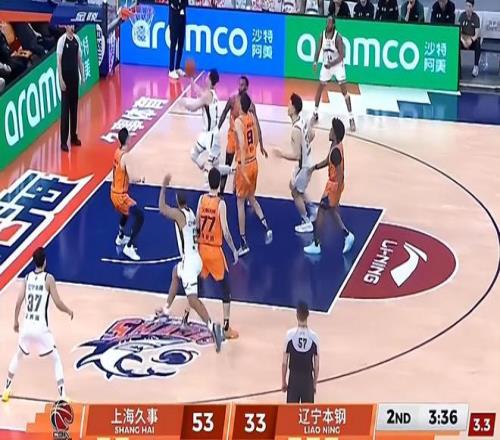 當(dāng)時(shí)比賽第二節(jié)比賽打到3分半左右,趙繼偉利用張陳治鋒的掩護(hù)突破上籃卻沒(méi)有打進(jìn),雙方隨后拼搶籃板球出界,裁判吹罰了上海男籃球權(quán)。