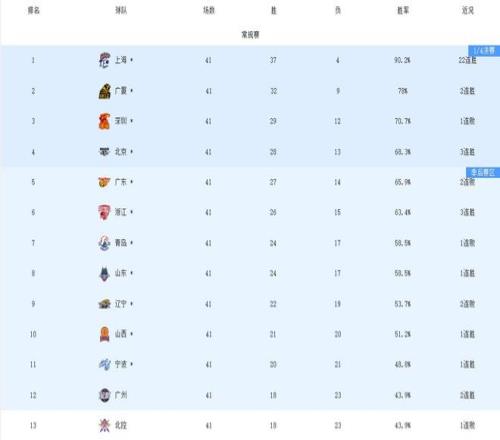 隨著廣東輸球,北京與深圳雙雙鎖定常規(guī)賽前四席位,兩隊最終誰能拿到第三名,將由最后一輪比賽結果決定:深圳若擊敗廣州,直接穩(wěn)居第三;若深圳輸球、北京擊敗吉林,則北京升至第三。