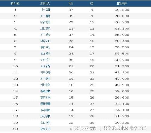 附:CBA積分榜最新排名