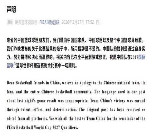 這兩條報道內容中毫無對相關方面的貶損之義,甚至大加贊賞。當然,國際籃聯(lián)沒必要和中國網(wǎng)友打一場關于英語表達的嘴巴官司,改了道歉了,對他們來說這事就結束了。