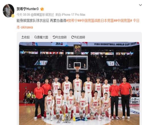 這場(chǎng)比賽中國(guó)男籃五人上雙,胡金秋10中9狂砍20分12籃板1蓋帽,但我個(gè)人認(rèn)為賀希寧在第三節(jié)開局階段是吹響反擊號(hào)角的那個(gè)人,他是此役當(dāng)之無(wú)愧的第一功勛!