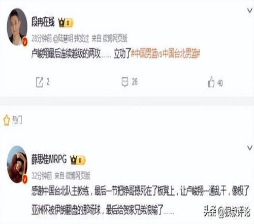 媒體人楊毅在最后時(shí)刻的點(diǎn)評(píng),同樣提到了盧峻翔,中國(guó)臺(tái)北男籃正常應(yīng)該交給陳盈駿和林庭謙處理,而盧峻翔太想當(dāng)英雄。