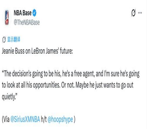 值得一提的是今年2月中旬,珍妮曾經(jīng)談到了詹姆斯的未來,當(dāng)時(shí)她表示,詹姆斯并沒有給出任何回歸湖人的信號(hào)。