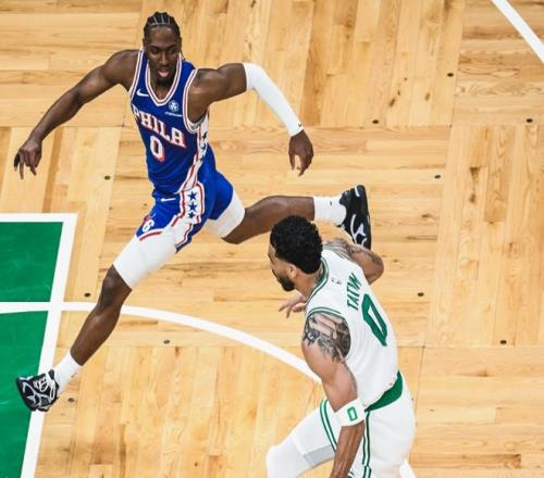 看一下比賽,開場豪澤和馬克西就對轟三分,76人中鋒博納1分鐘遭遇2次犯規(guī),喬治打成2+1后,塔圖姆和豪澤內(nèi)外開花,布朗欺負(fù)烏布雷,如同打小學(xué)生。中段塔圖姆繼續(xù)翻身跳投,懷特大空位三分球,76人防守顧此失彼,進(jìn)攻端就依靠喬治和馬克西維持局面。后半段普理查德上籃+扔進(jìn)三分,塔圖姆跳投,第一節(jié)打完,凱爾特人33-18領(lǐng)先76人。進(jìn)入第二節(jié),喬治連續(xù)獲得罰球機(jī)會,綠軍這邊謝爾曼拋投,加爾扎和小愛德華茲對轟三分,76人除了喬治,其他人都沒辦法處理球,場面很狼狽。