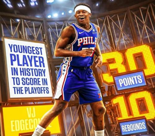 憑借著本場比賽,埃奇庫姆在20歲265天,季后賽單場打出30分10籃板,一舉超越邁克爾·喬丹;除此之外,NBA史上僅有兩位新秀后衛(wèi)在季后賽打出30+10,前一人是魔術(shù)師,另一個(gè)就是埃奇庫姆了。