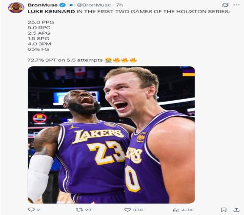 湖人主場連續(xù)兩場比賽擊敗火箭隊,不管有沒有杜蘭特火箭都不是湖人對手,勒布朗的個人能力還是那么無解,阿門、伊森、杜蘭特、泰特都無法限制他,可最讓人意外的那個卻是頂替東契奇打先發(fā)一號位的肯納德。