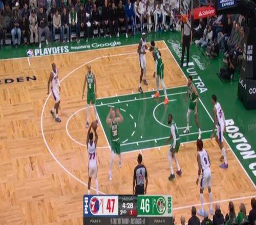 這節(jié)看下來很明顯的一個(gè)感覺就是,凱爾特人過于忌憚馬克西的威脅,導(dǎo)致對(duì)于埃奇庫(kù)姆的防守不夠重視,甚至有些刻意放空,然后硬生生把埃奇庫(kù)姆的手感培養(yǎng)了起來,這一情況直到第三節(jié)依然沒有改變,埃奇庫(kù)姆的持球三分甚至無(wú)人防守。