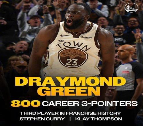 追夢達成生涯800記三分里程碑,成為勇士隊史第3人,前兩位是庫里與克萊。