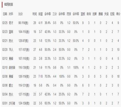 整個(gè)二月份里薩謝出戰(zhàn)了10場(chǎng)比賽,只有兩場(chǎng)比賽拿上雙的數(shù)據(jù),還有一場(chǎng)拿0分,里薩謝場(chǎng)均只有7.1分,命中率也只有36.3%,里薩謝這位2024年的狀元郎進(jìn)步實(shí)在是太小。