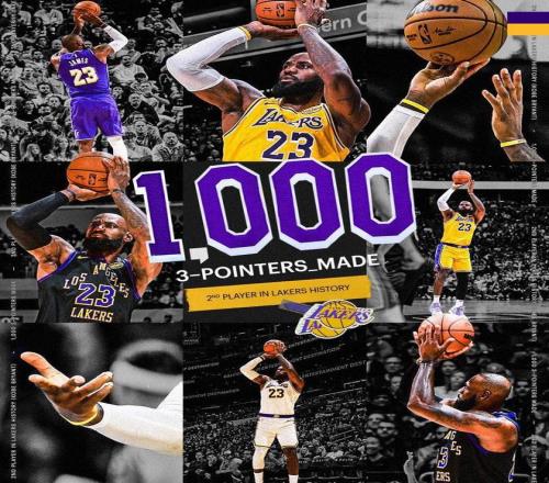 值得一提的是,詹姆斯在此役還創(chuàng)下了3大神跡。第1、此役之后,詹姆斯命中了加盟湖人后的第1000+記三分,成為隊(duì)史第二位達(dá)成此成就的湖人球員,第一位是科比(1827記)。