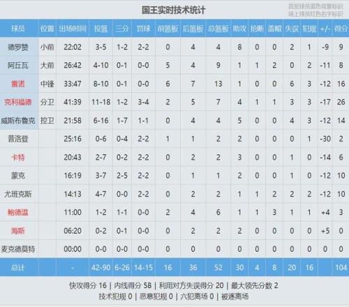 湖人首發(fā):東契奇、里夫斯、斯瑪特、詹姆斯、艾頓。國(guó)王首發(fā):威少、克利福德、德羅贊、阿丘瓦、雷諾。威少開(kāi)局手感不佳,首節(jié)5中1僅得2分3助攻3失誤。國(guó)王全隊(duì)三分球5中0,第一節(jié)打完,湖人36-18領(lǐng)先國(guó)王18分。
