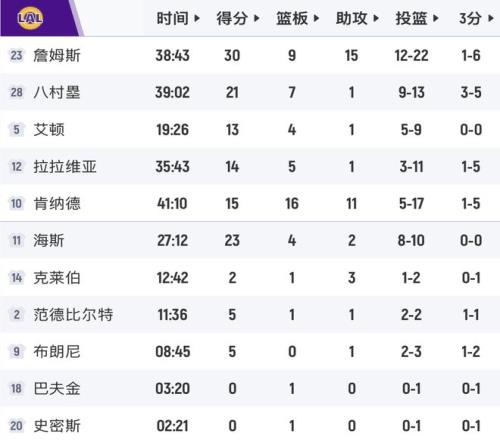 詹姆斯30+9+15,湖人128134負(fù)獨(dú)行俠!誰是輸球罪魁數(shù)據(jù)不說謊