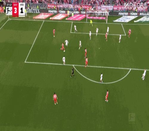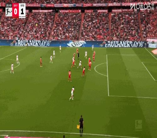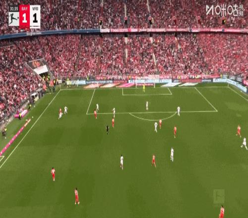 第31分鐘,穆西亞拉左路強突后橫掃門前,格雷羅包抄打空門得手,拜仁1比1追平比分!