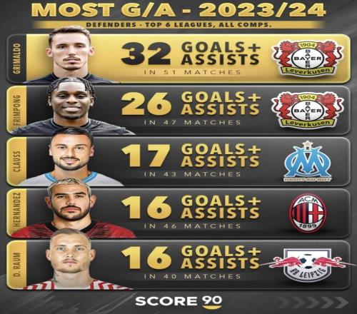 最近 Score90 連續(xù)發(fā)了三張五大聯(lián)賽后衛(wèi)參與進(jìn)球榜,格里馬爾多的名字這三年一直都在第一梯隊(duì)。直接看數(shù)據(jù):202...