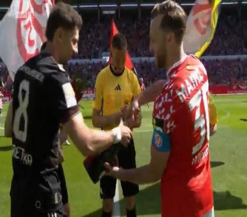 本場(chǎng)比賽開(kāi)打前,美因茨隊(duì)長(zhǎng)西爾萬(wàn)-威德默代表俱樂(lè)部向拜仁送了一束鮮花和一瓶香檳作為冠軍禮物。