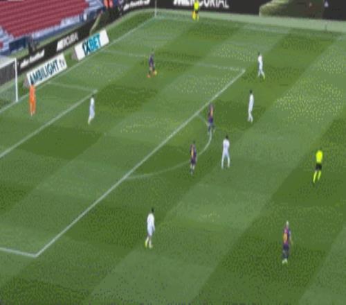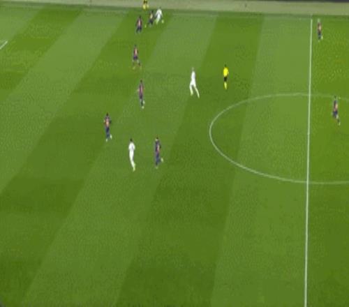 奧爾莫最重要的一點(diǎn),就是他不只是組織進(jìn)攻,還能參與防守。這一次拉菲尼亞上搶踢空了,對(duì)手打孔德背后獲得機(jī)會(huì)。
