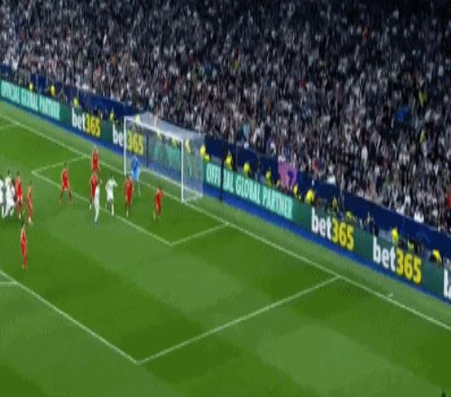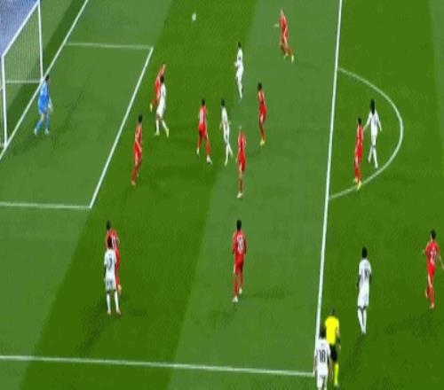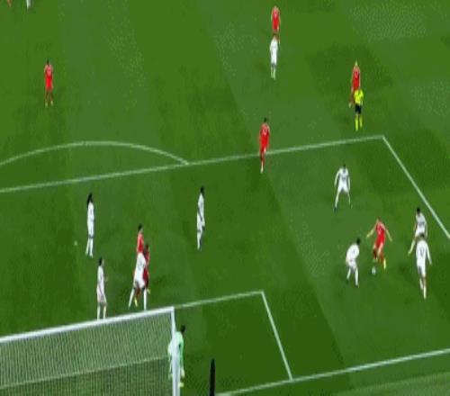 第16分鐘,居萊爾做球,巴爾韋德右路倒三角傳中,楚阿梅尼迎球勁射,特魯賓撲了一下依舊入網(wǎng),皇馬迅速扳平比分,1-1!