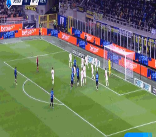 第13分鐘,國米開出角球,阿坎吉頭球攻門高出