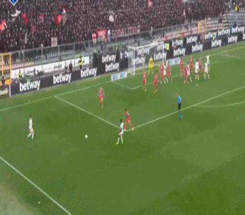 第55分鐘,羅馬角球戰(zhàn)術(shù)配合,恩迪卡門前混戰(zhàn)中再下一城,羅馬2-1再次反尤文。