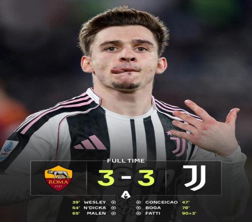 比賽進入最后階段,尤文越戰(zhàn)越勇,壓力全部壓向主隊防線。補時階段,加蒂抓住混亂機會完成絕平,3-3!從1-3到3-3,尤文硬生生從深淵爬回來。羅馬到手的三分飛走,只能接受苦澀平局。