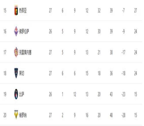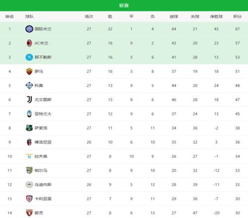 隨著AC米蘭20+尤文33絕平羅馬!意甲最新積分榜:26名差10分