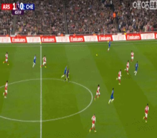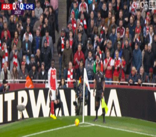 第21分鐘,薩利巴利用角球機(jī)會(huì)頭球破門,阿森納1-0切爾西!
