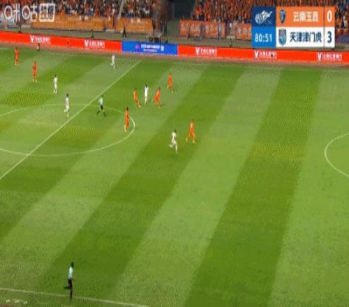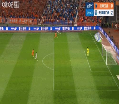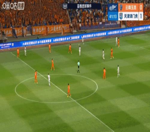 王政豪長傳找身后,基萊斯中場插上破門,津門虎1-0云南