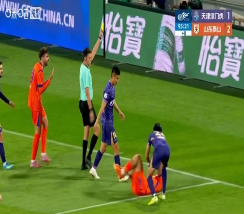中超第7輪天津津門(mén)虎1比2山東泰山的比賽中,罕見(jiàn)地出現(xiàn)一次全身騰空式“雙腿飛鏟”,然而主裁判僅僅掏出黃牌進(jìn)...