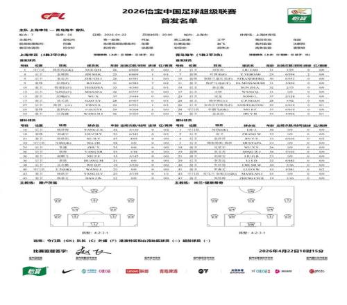 4月22日20:00,在2026賽季中超聯(lián)賽第7輪的一場(chǎng)關(guān)鍵對(duì)決中,上海申花主場(chǎng)迎戰(zhàn)青島海牛。賽前,兩隊(duì)首發(fā)名單出爐。...