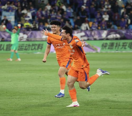 比賽最后時(shí)刻,泰山隊(duì)原本已經(jīng)做好換人準(zhǔn)備,體能接近極限的陳澤仕要被換下。就在這個(gè)節(jié)點(diǎn),陳澤仕進(jìn)球了,克雷桑的左路突破撕開(kāi)防線,瓦科冷靜回傳,陳澤仕大力射門(mén),泰山隊(duì)終于取得領(lǐng)先。進(jìn)球后的陳澤仕飛奔向替補(bǔ)席,和他第一個(gè)擁抱的是史松宸,兩位21歲的小將,在這一刻都是釋放自己。