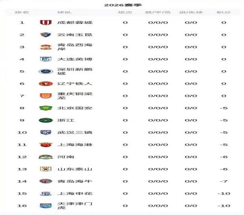 中超9隊被罰分!媒體人熱議:蓉城玉昆沖冠,津門虎目標保級