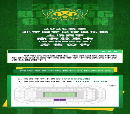 2026賽季北京國(guó)安足球俱樂(lè)部主場(chǎng)賽事商務(wù)尊享卡原名稱(chēng)商務(wù)年票發(fā)售公告